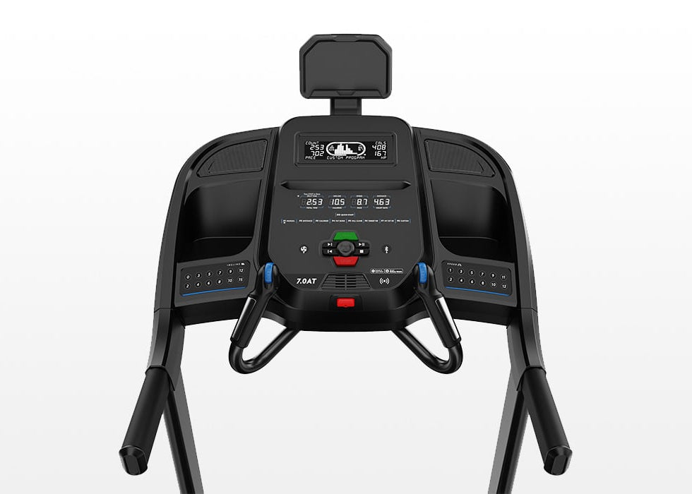 | Extras | Audio In/Out Jack, Bluetooth Speakers, Bottle Holder, Built-in Speakers, Custom Interval Keys, Energy Saver Mode, Fan, Speed & Incline Quick Dial Controls, Tablet Rack, USB charging (1A/5V), Water Bottle Holder | Audio In/Out Jack, Bluetooth Speakers, Custom Interval Keys, Energy Saver Mode, Fan, Multi-position Tablet Holders, Speed & Incline Quick Dial Controls, USB charging (1A/5V), Water Bottle Holder | Accessory Tray, Aluminum Side Rails, Audio In/Out Jack, Bluetooth Speakers, Custom Interval Keys, Energy Saver Mode, Fan, Media Controls, Multi-position Tablet Holders, Speed & Incline Quick Dial Controls, USB charging (1A/5V), Water Bottle Holder |